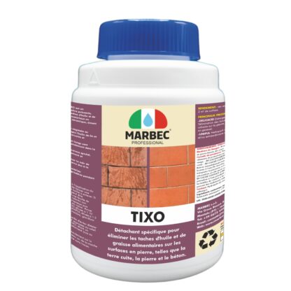 TIXO est le détachant professionnel pour éliminer les taches d’huile et de graisse alimentaire sur les surfaces en pierre telles que la terre cuite, la pierre et le béton. TIXO élimine efficacement les taches avec une action protectrice de longue durée. Il ne laisse aucun résidu ni odeur désagréable sur les surfaces en terre cuite, en pierre et en béton.