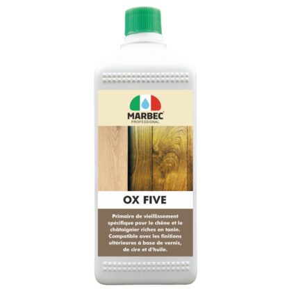 OX-FIVE est une solution liquide non dangereuse pour le vieillissement des surfaces en chêne et en châtaignier riches en tanin.